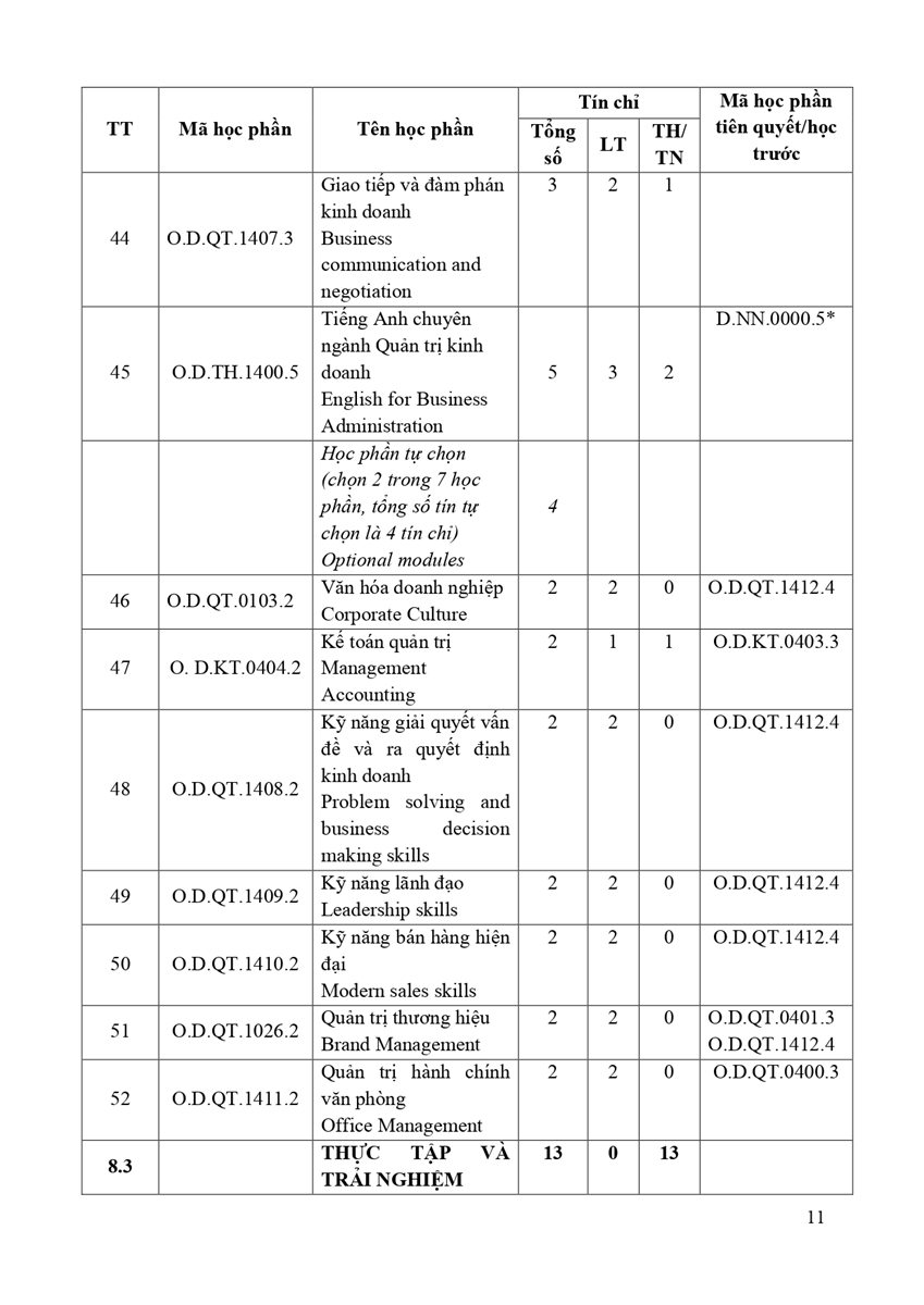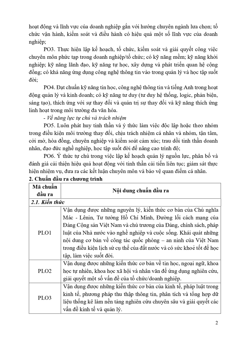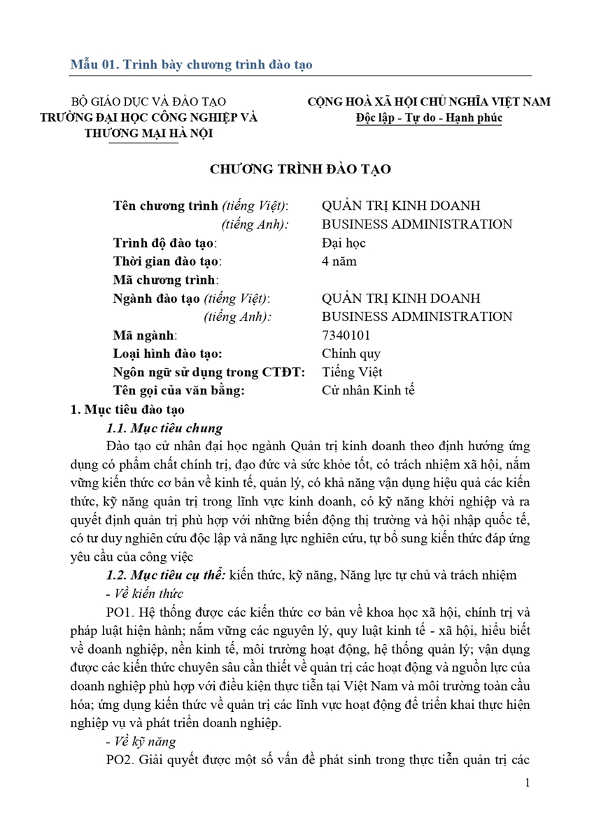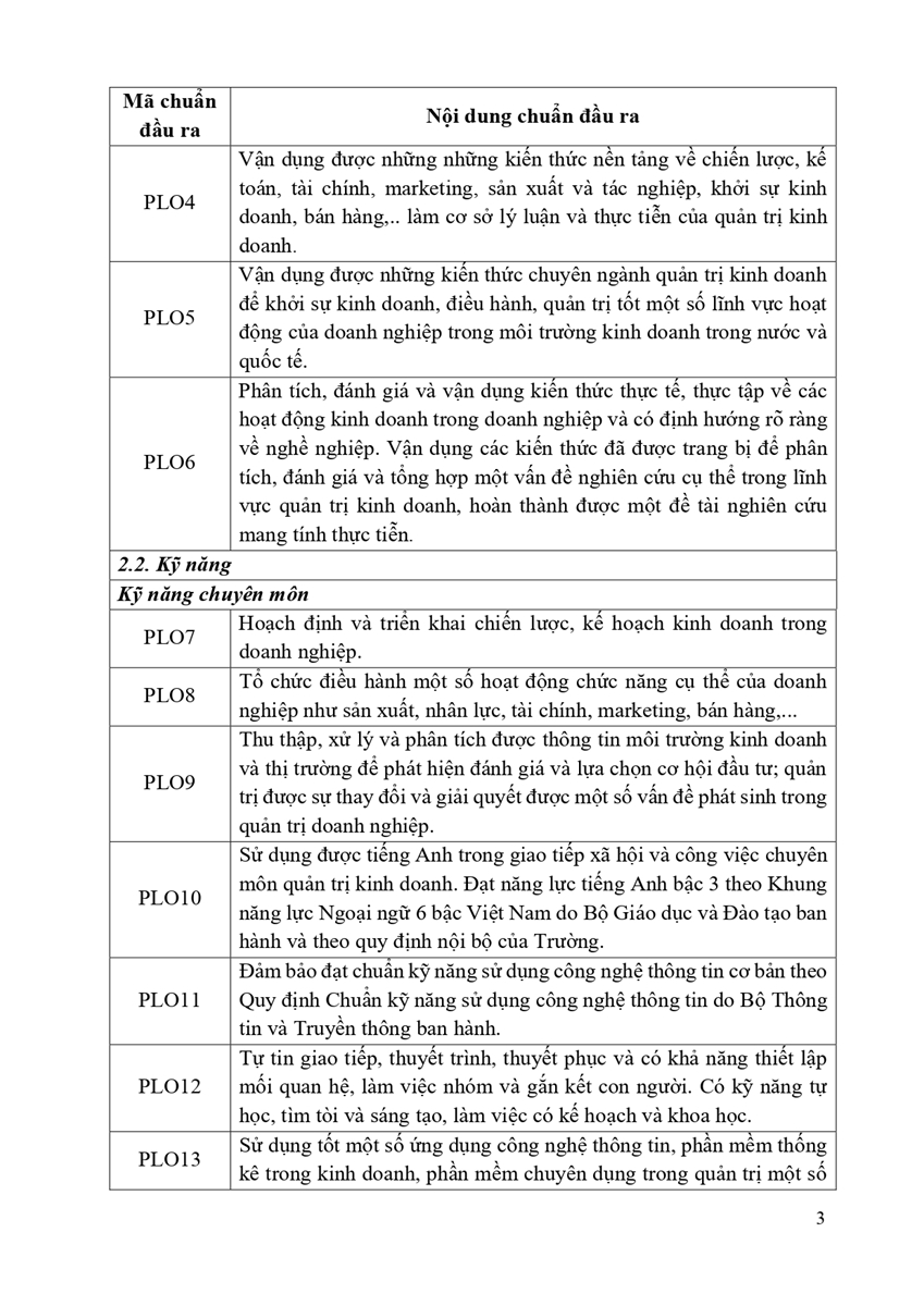 Chương trình đào tạo ngành Quản trị kinh doanh