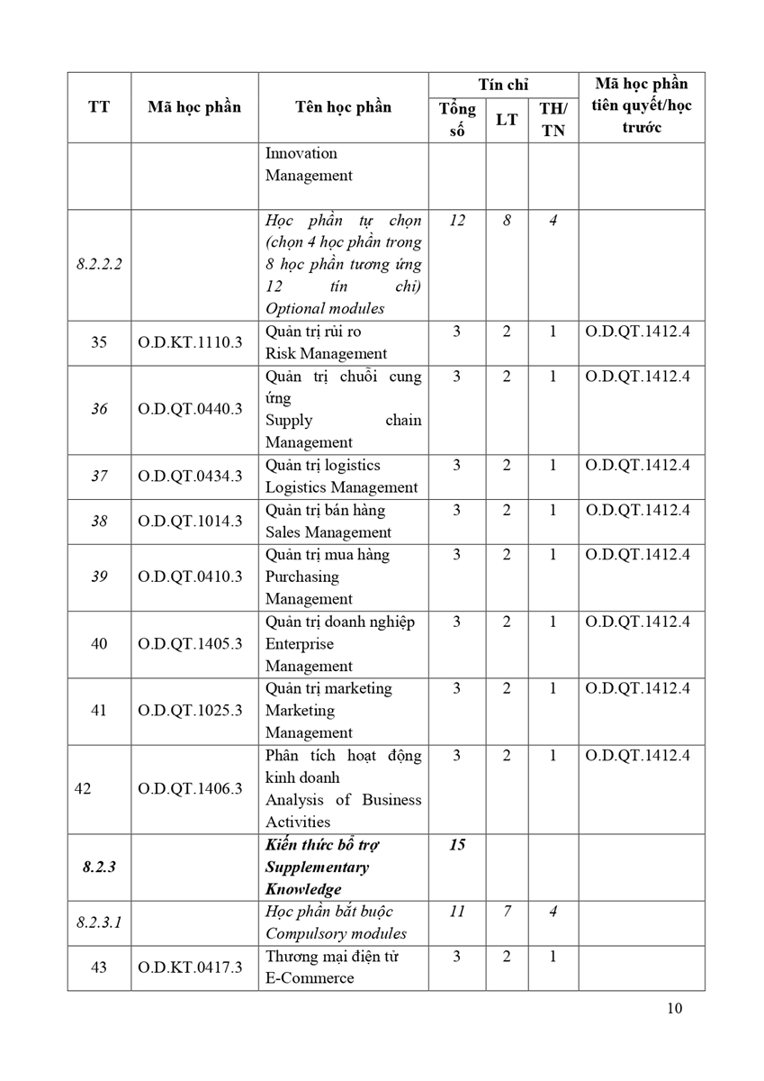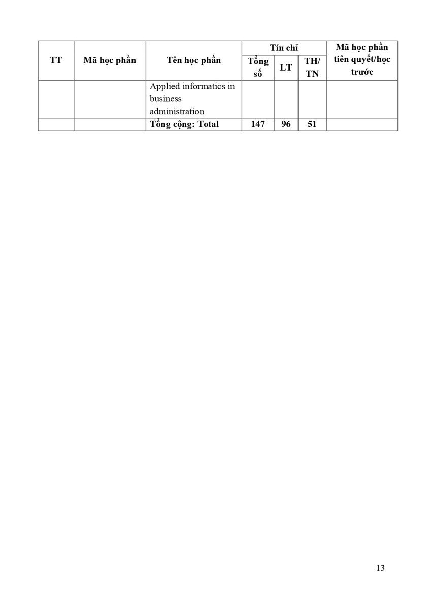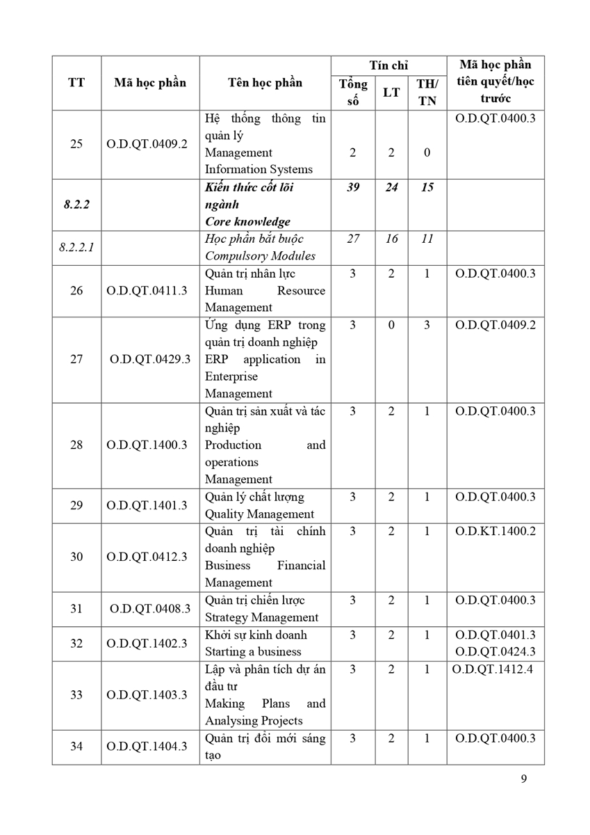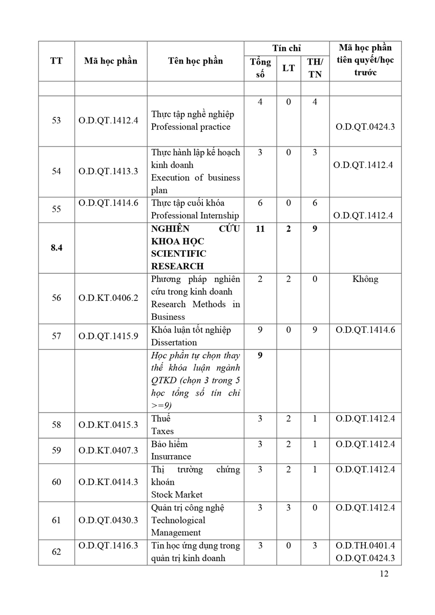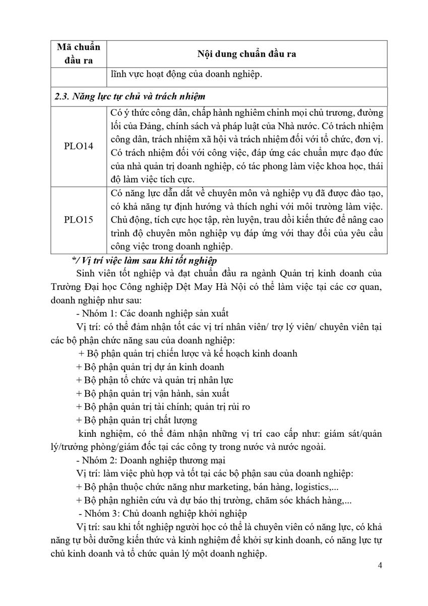 Chương trình đào tạo ngành Quản trị kinh doanh