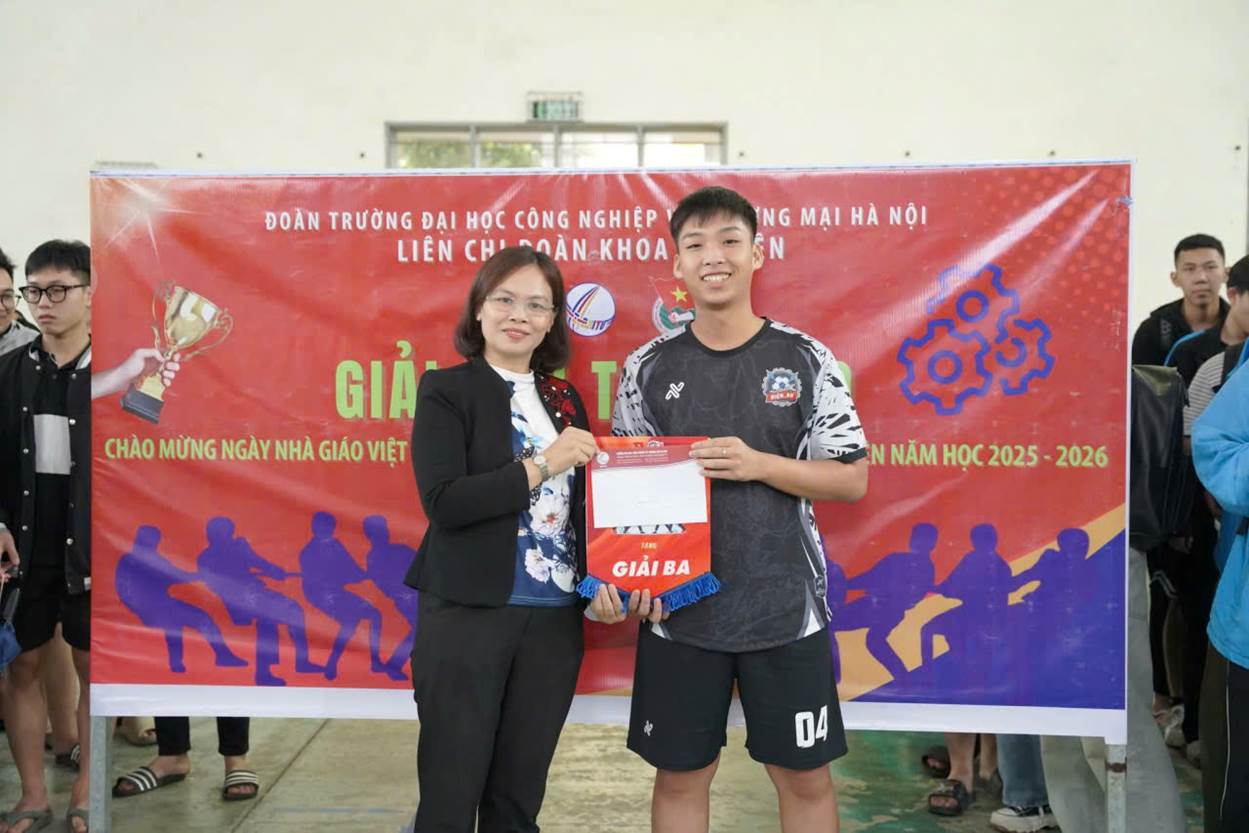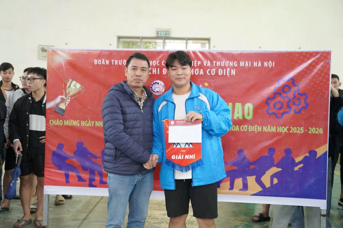 Giải đấu chính thức khép lại nhưng tinh thần thể thao và nguồn năng lượng tích cực chắc chắn sẽ còn lan tỏa mạnh mẽ trong thời gian tới. Khoa Cơ Điện sẽ tiếp tục tổ chức nhiều hoạt động thiết thực, bổ ích và ý nghĩa để đồng hành cùng sinh viên trong hành trình học tập và rèn luyện. Hẹn gặp lại các bạn trong những chương trình tiếp theo của Khoa Cơ Điện – Trường Đại học Công nghiệp và Thương mại Hà Nội!