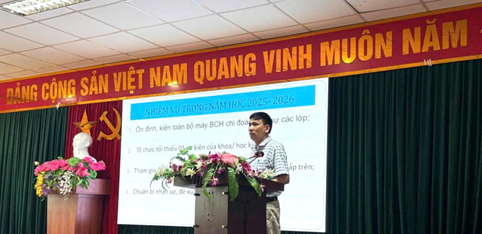 Phát biểu tại buổi gặp mặt, Thầy Phan Đức Khánh đã khẳng định vai trò then chốt của đội ngũ cán bộ lớp và cán bộ đoàn trong việc tổ chức, điều hành và kết nối giữa sinh viên với lãnh đạo khoa. Thầy nhấn mạnh: “Cán bộ lớp và cán bộ đoàn không chỉ là những người đại diện cho tập thể, mà còn là hạt nhân truyền cảm hứng, giữ gìn kỷ luật, thúc đẩy tinh thần học tập và phong trào thi đua trong toàn khoa.”