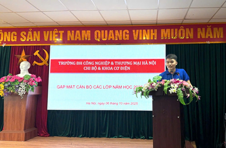 Ngày 06/10/2025, Khoa Cơ Điện – Trường Đại học Công nghiệp và Thương mại Hà Nội đã long trọng tổ chức buổi gặp mặt cán bộ các lớp năm học 2025–2026. Đây là hoạt động thường niên có ý nghĩa đặc biệt, nhằm tổng kết, định hướng và triển khai các nhiệm vụ trọng tâm của khoa trong năm học mới, đồng thời là dịp để lãnh đạo khoa, cố vấn học tập và đội ngũ cán bộ lớp cùng trao đổi, chia sẻ, thắt chặt tinh thần đoàn kết, hợp tác vì sự phát triển chung của tập thể sinh viên Khoa Cơ Điện.