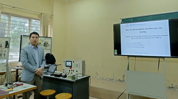 Sau phần trình bày, các thành viên Hội đồng đã nhận xét, đánh giá khách quan về nội dung nghiên cứu, tính khoa học, tính sáng tạo và khả năng ứng dụng của đề tài. Hội đồng đánh giá cao tinh thần nghiêm túc, phương pháp nghiên cứu rõ ràng, sản phẩm có tính thực tiễn cao, phù hợp với định hướng đào tạo của Khoa Cơ Điện và nhu cầu sử dụng trong giảng dạy, thực hành chuyên ngành.