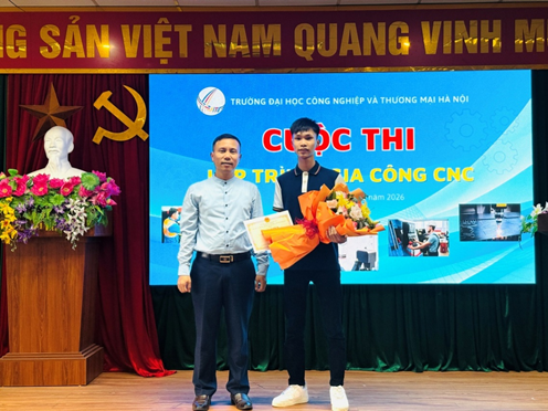 Với sự chuẩn bị chu đáo, tổ chức khoa học và tinh thần tham gia nghiêm túc của sinh viên, Cuộc thi “Lập trình, gia công CNC” năm 2026 do Khoa Cơ điện tổ chức đã diễn ra thành công tốt đẹp. Cuộc thi không chỉ tạo được sân chơi học thuật bổ ích mà còn góp phần khẳng định chất lượng đào tạo của Khoa Cơ điện – Trường Đại học Công nghiệp và Thương mại Hà Nội trong lĩnh vực Công nghệ Kỹ thuật Cơ khí.