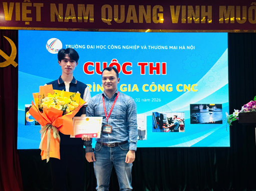 Ngày 20 tháng 01 năm 2026, tại Phòng 202 – C5, Khoa Cơ điện – Trường Đại học Công nghiệp và Thương mại Hà Nội (HITU) đã tổ chức thành công Cuộc thi “Lập trình, gia công CNC” dành cho sinh viên ngành Công nghệ Kỹ thuật Cơ khí. Cuộc thi đã thu hút sự quan tâm, tham gia sôi nổi của đông đảo sinh viên và để lại nhiều dấu ấn chuyên môn tích cực.
