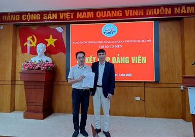 Với sự giúp đỡ, bồi dưỡng chi bộ Cơ Điện, trải qua quá trình tu dưỡng và rèn luyện. Được sự cho phép của Đảng ủy Trường Đại Học Công Nghiệp và Thương Mại Hà Nội sáng ngày 11/11/2025, tại phòng C1-305, chi bộ Cơ điện đã long trọng tổ chức Lễ kết nạp đảng viên mới cho quần chúng Nguyễn Văn Lâm, giảng viên Khoa Cơ điện.