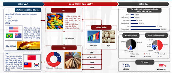 Ngành dệt may cần có hướng đi mới, giảm phụ thuộc vào thị trường quốc tế, tự chủ nguồn cung nguyên phụ liệu, chuyển dần trọng tâm sang khai thác thị trường nội địa; chú trọng đến sản xuất vải, khuyến khích sản xuất vải từ sợi sản xuất trong nước nhằm giảm nhập khẩu, tác động tích cực đến mối liên kết, hình thành chuỗi giá trị và cung ứng hoàn chỉnh trong ngành dệt may, đáp ứng yêu cầu về quy tắc xuất xứ của các hiệp định thương mại tự do thế hệ mới, cũng như đẩy mạnh quá trình nội địa hóa.