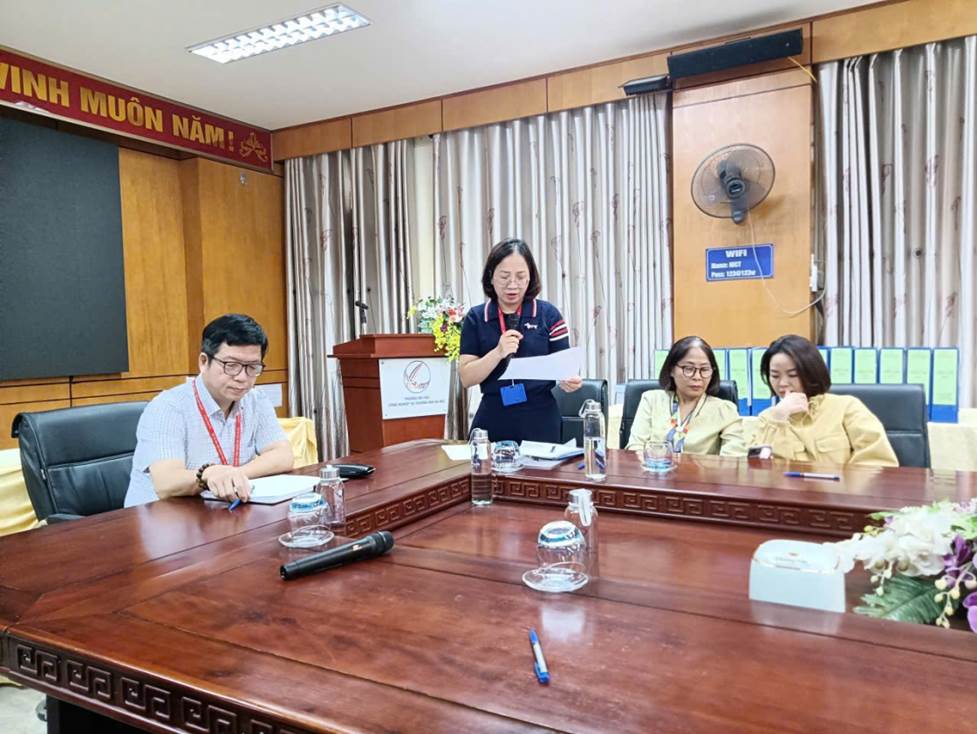 Điều hành lấy phiếu tín nhiệm ThS. Nghiêm Thị Hoài Trưởng phòng tổ chức hành chính, trưởng ban kiểm phiếu đã thông báo kết quả. Với 100% số phiếu bầu đồng ý tín nhiệm, bổ nhiệm lại chức danh Trưởng khoa Công nghệ Dệt May đối với đồng chí Ngô Thị Thanh Mai. TS. Hoàng Xuân Hiệp giao nhiệm vụ Phòng Tổ Chức Hành Chính tiếp tục các quy trình tiếp theo thông qua Hội nghị cán bộ chủ chốt và Đảng ủy.