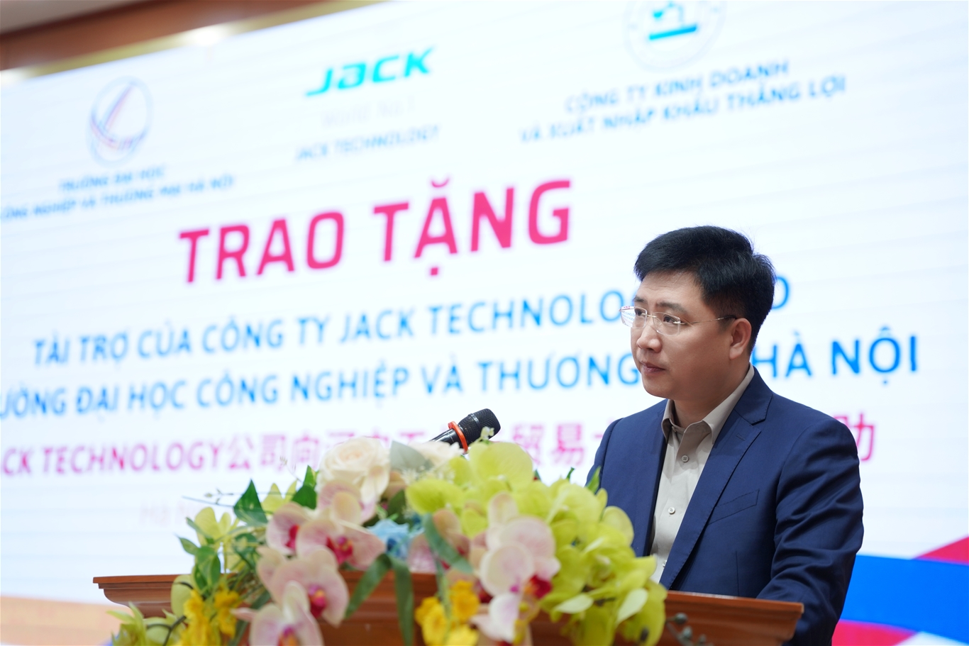Trong phần phát biểu, ông Yan Wenjin - Tổng Giám đốc khối Quản lý Chiến lược và Đầu tư của Jack Technolog chia sẻ niềm vui khi được hợp tác cùng Trường Đại học Công nghiệp và Thương mại Hà Nội - một cơ sở đào tạo uy tín, có truyền thống gắn kết doanh nghiệp trong quá trình đào tạo. Ông khẳng định Jack Technology luôn sẵn sàng đồng hành cùng nhà trường trong các hoạt động hỗ trợ học tập, thực hành và nghiên cứu của sinh viên, góp phần thúc đẩy đổi mới sáng tạo trong đào tạo kỹ thuật, công nghệ và thương mại.