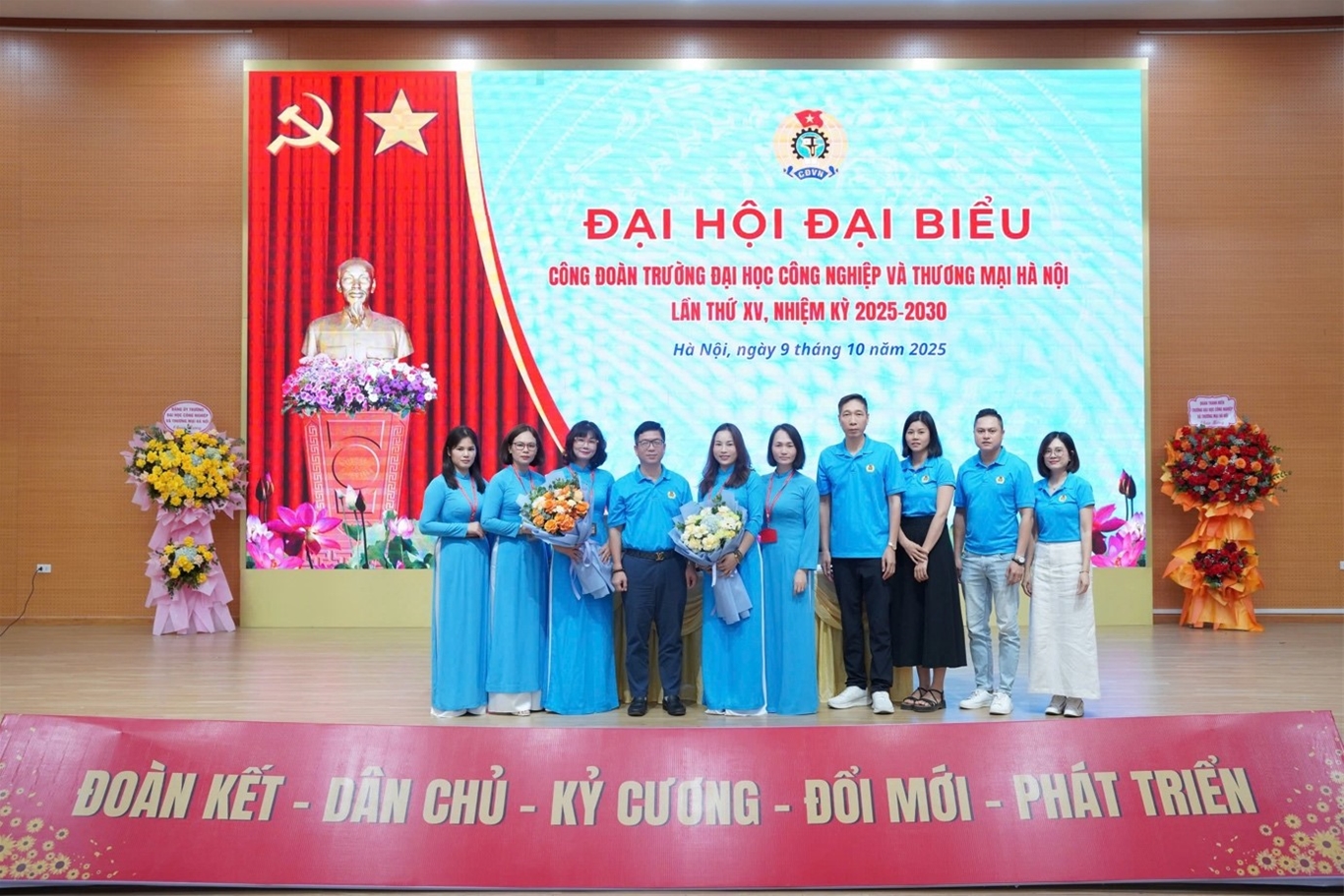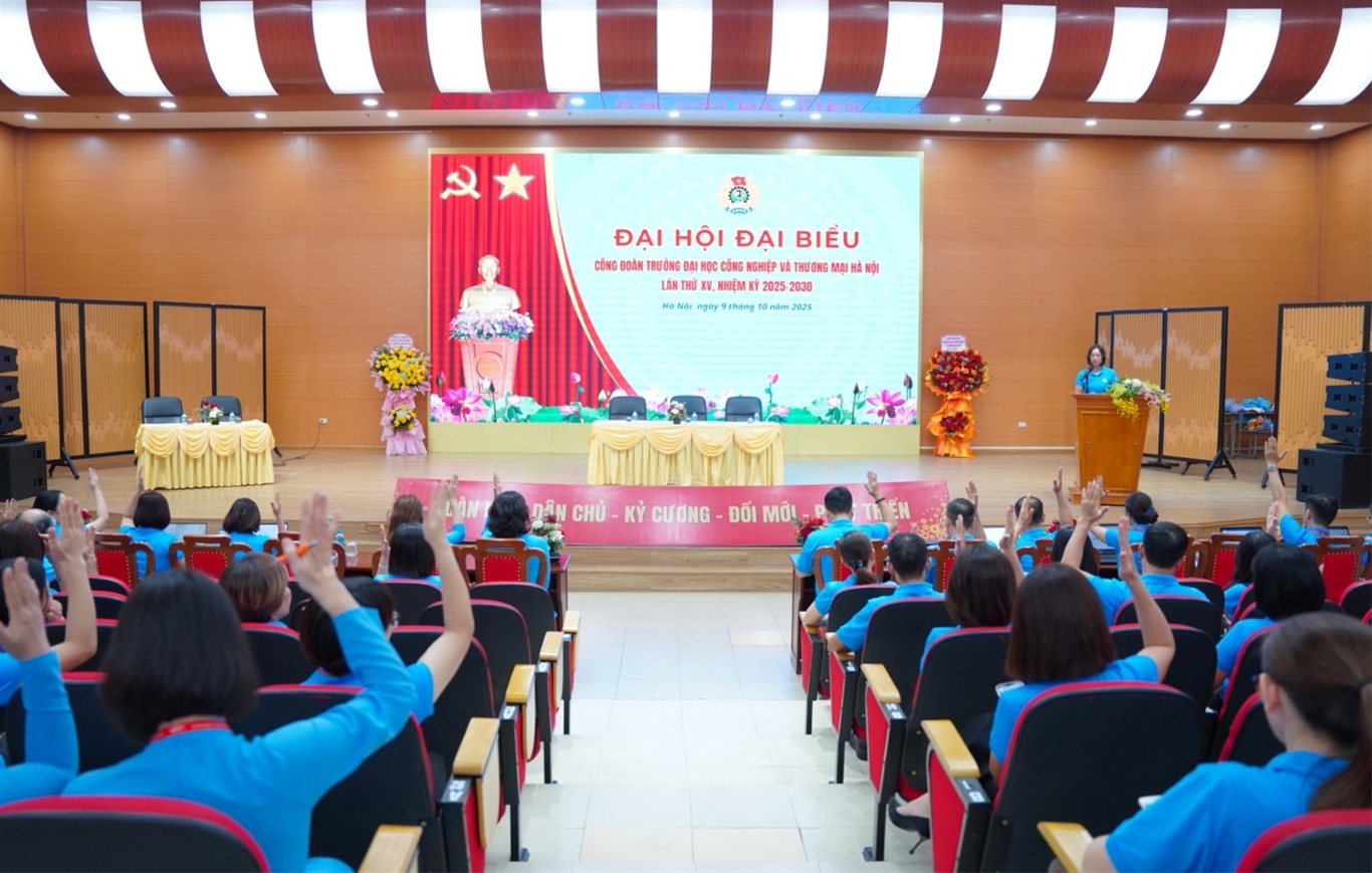 Sáng ngày 9 tháng 10 năm 2025, trường Đại học Công nghiệp và Thương mại Hà Nội đã long trọng diễn ra Đại hội đại biểu Công đoàn Trường lần thứ XV, nhiệm kỳ 2025-2030.
