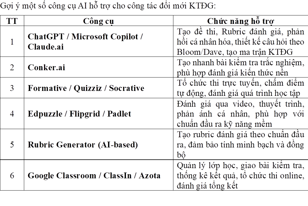 Ứng dụng AI vào hoạt động đổi mới kiểm tra đánh giá mức độ đạt chuẩn đầu ra học phần của người học
