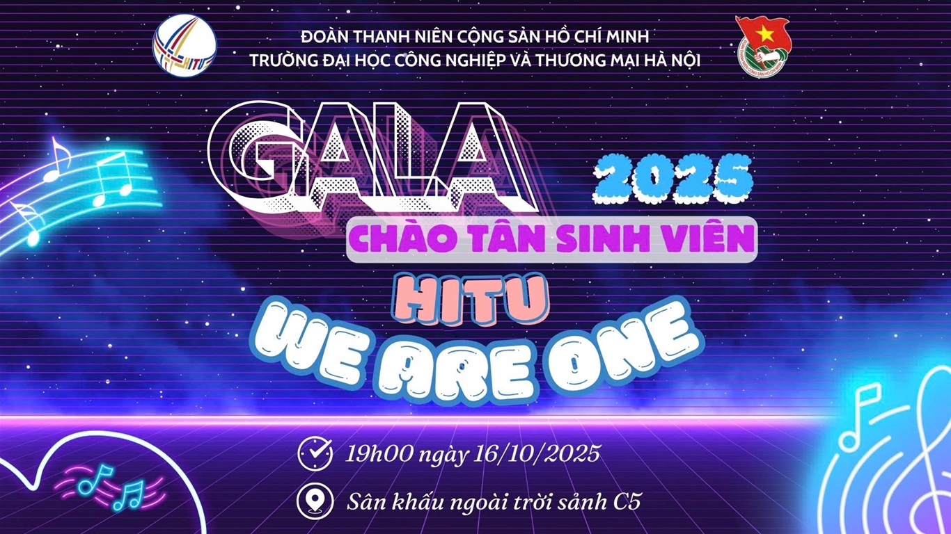Tối ngày 16/10/2025, Trường Đại học Công nghiệp và Thương mại Hà Nội (HITU) sẽ tổ chức Gala Chào tân sinh viên HITU 2025 với chủ đề “WE ARE ONE” - sự kiện được mong chờ nhất năm của toàn thể sinh viên HITU. Đây là chương trình thường niên nhằm chào đón các tân sinh viên khóa 10, tạo dấu ấn đầu tiên trong hành trình học tập và trải nghiệm tại mái trường mang đậm tinh thần sáng tạo - năng động - hội nhập.