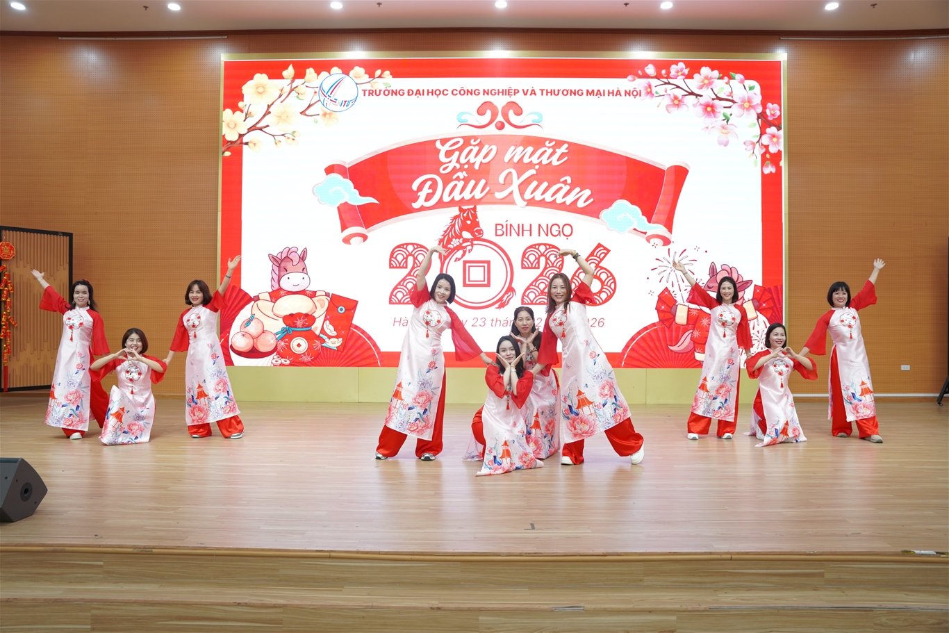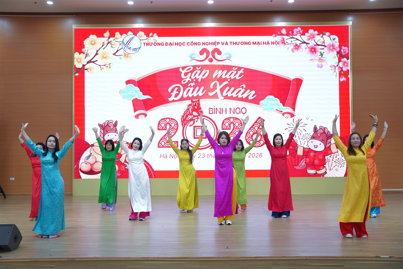 Sáng ngày 23/02/2026 (tức ngày 07 tháng Giêng năm Bính Ngọ), trong không khí hân hoan của những ngày đầu xuân, Trường Đại học Công nghiệp và Thương mại Hà Nội đã long trọng tổ chức chương trình Gặp mặt đầu xuân Bính Ngọ 2026 với sự tham dự của Ban Giám hiệu, lãnh đạo các đơn vị, cùng toàn thể cán bộ, giảng viên, chuyên viên, nhân viên, người lao động Nhà trường.