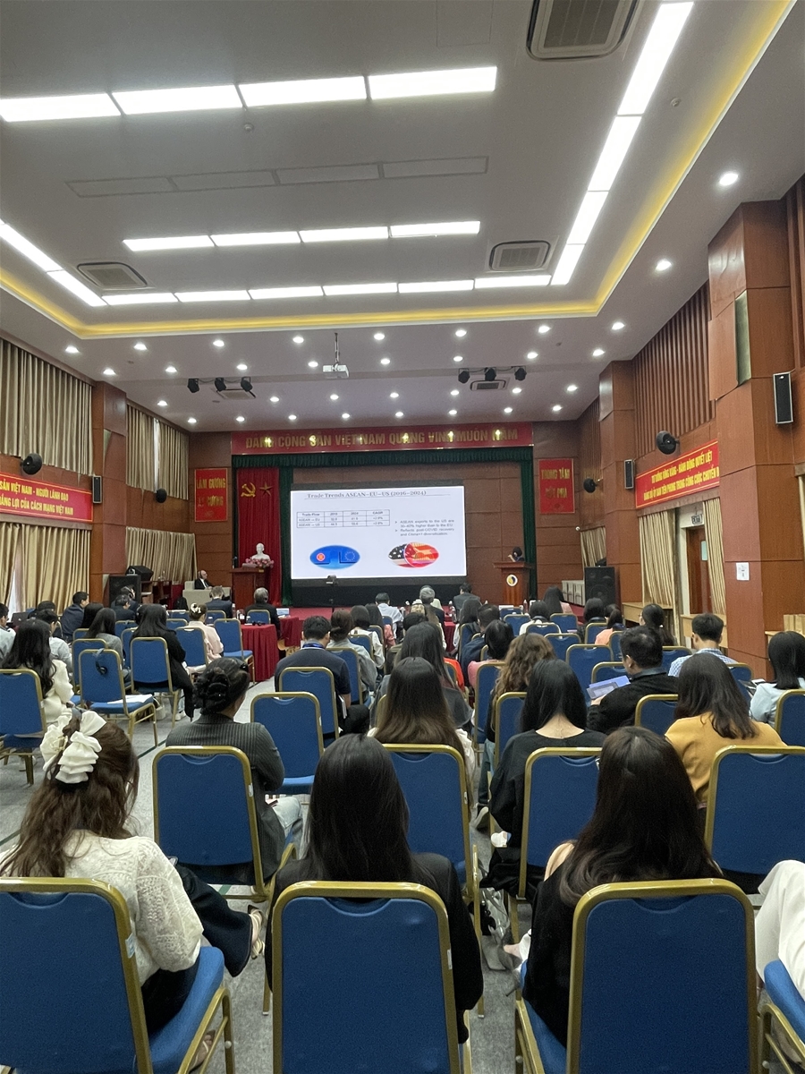 Tại sự kiện, Trường Đại học Công nghiệp và Thương mại Hà Nội (HITU) vinh dự được mời tham gia với vai trò diễn giả tại Phiên 1: “Ngành Dệt may ASEAN – Thực trạng, cơ hội và thách thức từ góc độ chất lượng.” Đại diện nhà trường, bà Đinh Thị Thủy – Phó Trưởng khoa Kinh tế, đã có bài tham luận sâu sắc, phân tích thực trạng ngành dệt may ASEAN, chỉ ra những thách thức trong đáp ứng yêu cầu chất lượng, truy xuất nguồn gốc và tiêu chuẩn bền vững, đồng thời đề xuất giải pháp tăng cường năng lực quản trị chất lượng, đổi mới đào tạo nhân lực và đẩy mạnh liên kết doanh nghiệp - nhà trường - cơ quan quản lý.
