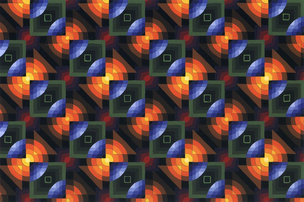 Bố cục đăng đối trong hình vuông – Hoà sắc nóng- Hoạ tiết cá cách điệu |
