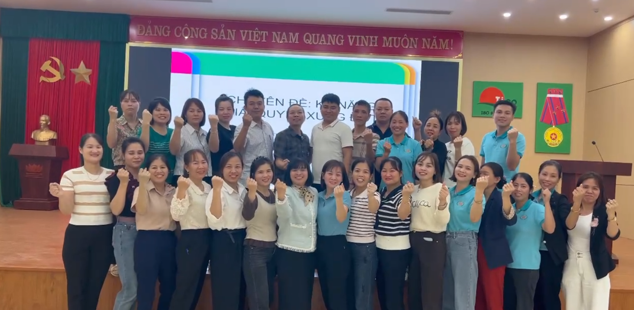 Trong các buổi tập huấn, học viên đã tích cực trao đổi về các vấn đề thường gặp như áp lực tiến độ, mâu thuẫn cá nhân trong chuyền, khó khăn khi truyền đạt yêu cầu công việc, sự chênh lệch năng lực giữa công nhân hoặc những tình huống cần ứng xử mềm dẻo nhưng vẫn đảm bảo kỷ luật sản xuất.