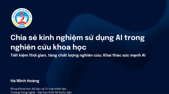 Trong bối cảnh công nghệ trí tuệ nhân tạo (AI) đang tạo nên những bước đột phá mạnh mẽ và ngày càng chứng minh giá trị trong hầu hết các lĩnh vực, từ sản xuất, quản trị đến giáo dục và nghiên cứu, việc cập nhật, khai thác hiệu quả sức mạnh của AI trong nghiên cứu khoa học (NCKH) đã trở thành một nhu cầu cấp thiết. Với tinh thần đó, ngày 28/9/2025 vừa qua, Khoa Kinh tế, Trường Đại học Công nghiệp và Thương mại Hà Nội đã cử các giảng viên tham dự Seminar khoa học với chủ đề: “Chia sẻ kinh nghiệm sử dụng AI trong nghiên cứu khoa học – Tiết kiệm thời gian, tăng chất lượng nghiên cứu: Khai thác sức mạnh AI”. Buổi trao đổi được tổ chức tại Đại học Kinh tế quốc dân với sự tham gia của diễn giả Hà Minh Hoàng – Giảng viên Khoa Khoa học dữ liệu và Trí tuệ nhân tạo, Trường Công nghệ – Đại học Kinh tế Quốc dân, thu hút đông đảo giảng viên, nhà nghiên cứu trẻ và sinh viên cao học quan tâm đến xu hướng ứng dụng công nghệ mới trong học thuật.
