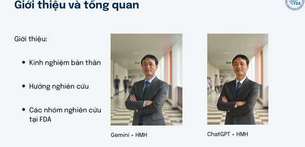 Trong buổi seminar diễn giả còn giới thiệu cách soạn slide thuyết trình bằng AI. Người nghiên cứu chỉ cần mô tả cấu trúc mong muốn (ví dụ: 20 slide gồm phần giới thiệu, tổng quan tài liệu, phương pháp, kết quả và kết luận), AI sẽ nhanh chóng tạo nội dung phù hợp để người dùng tinh chỉnh. Điều này mở ra hướng đi mới cho việc chuẩn bị các bài trình bày tại hội thảo, giúp tiết kiệm đáng kể công sức.