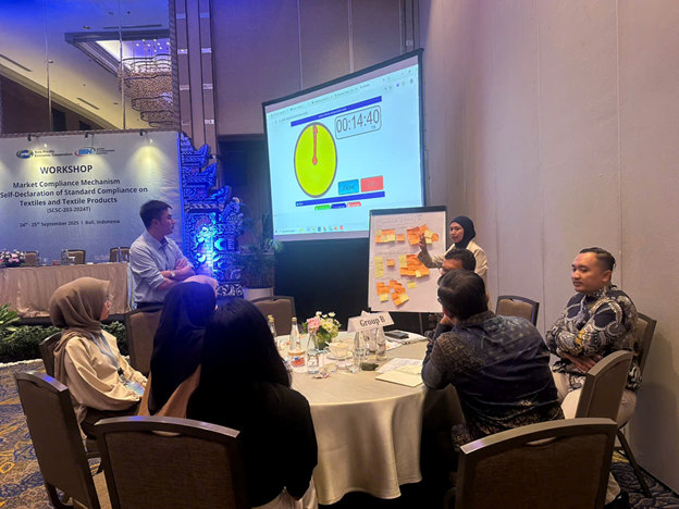 Phiên buổi chiều ngày làm việc đầu tiên tập trung vào thực tiễn triển khai SDoC (tự công bố hợp chuẩn) và những thách thức trong ngành dệt may. Đại diện Bộ Công nghiệp Indonesia, bà I Gusti Ayu Agung Deviyanti Negari, phân tích chiến lược nâng cao năng lực cạnh tranh thông qua việc áp dụng SNI và SDoC. Đại diện Bộ Thương mại Indonesia, ông Delvinalis Setiawan, trình bày khung pháp lý liên quan đến SDoC gắn với yêu cầu K3L (sức khỏe, an toàn và môi trường). Từ góc độ cơ quan thử nghiệm, bà Puspaning Buanawaty (BPMB) nhấn mạnh vai trò của thử nghiệm độc lập trong bảo đảm độ tin cậy của việc tự công bố. Cuối phiên, ông Bruce Ng từ UL Solutions nêu giải pháp tăng cường niềm tin vào SDoC thông qua kiểm định và chứng nhận quốc tế, qua đó mở ra những trao đổi sôi nổi giữa các nền kinh tế APEC.