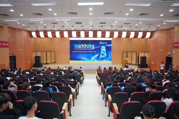 Sáng ngày 26/9/2025, tại Hội trường C5-401, Trường Đại học Công nghiệp và Thương mại Hà Nội đã long trọng diễn ra chương trình Unitour 2025 với chủ đề “Dẫn dắt tầm nhìn - Định hình Kỷ nguyên số”. Sự kiện nằm trong khuôn khổ Cuộc thi Sinh viên Kinh doanh số 2025, do Hiệp hội Thương mại điện tử Việt Nam (VECOM) phối hợp cùng Mạng lưới các cơ sở đào tạo Thương mại điện tử (VecomNet) và nhiều doanh nghiệp đồng hành tổ chức.