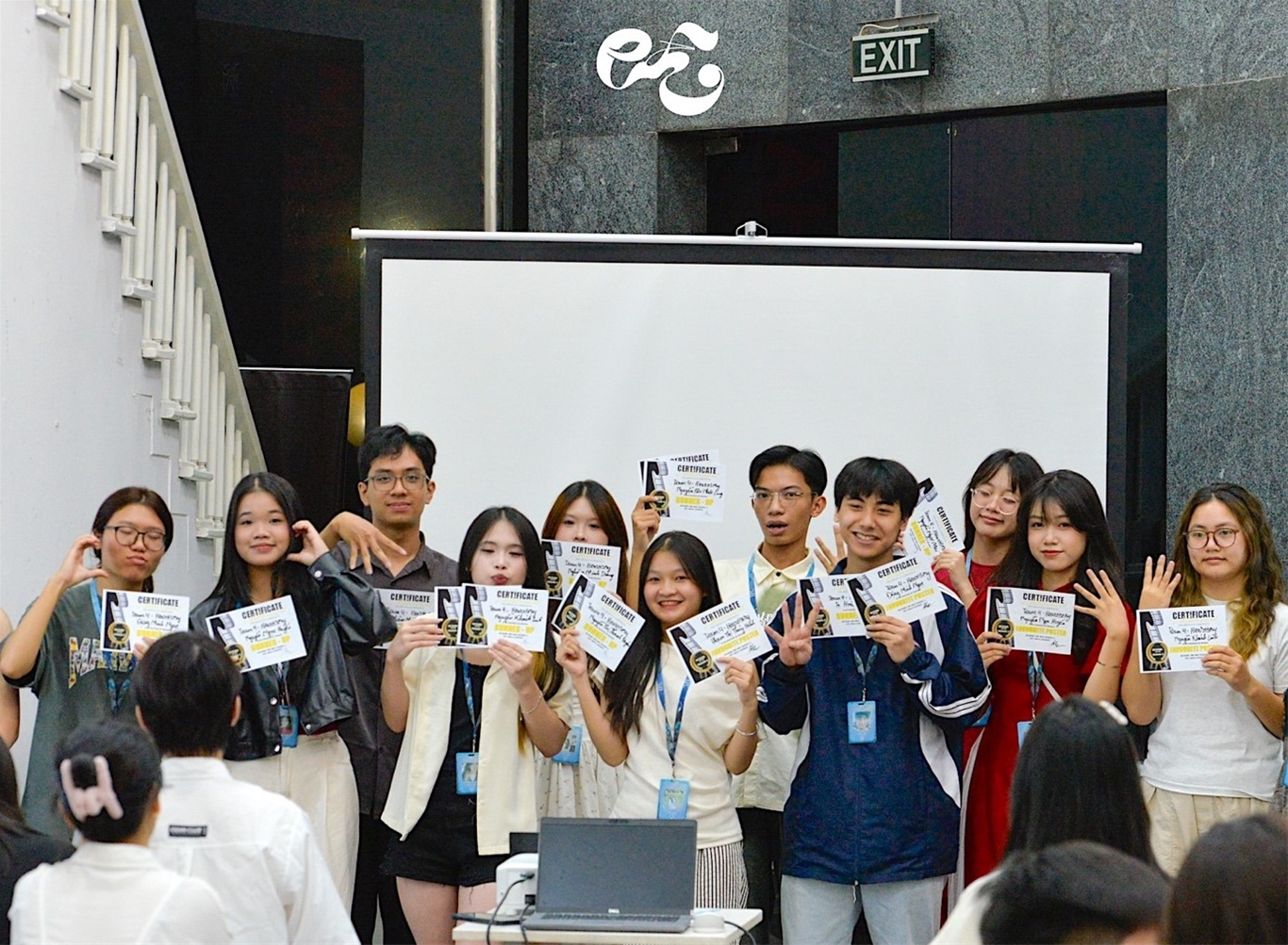 Nguyễn Đức Nghĩa chụp ảnh nhận giải thưởng cùng CLB Tiếng Anh EFC, Học viện Báo chí và Tuyên truyền