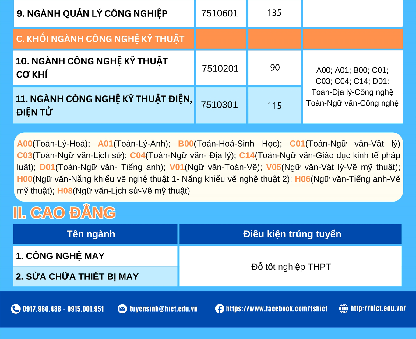 Năm 2025 Nhà trường tuyển sinh 11 ngành đào tạo theo 02 phương thức xét tuyển. Cụ thể:
