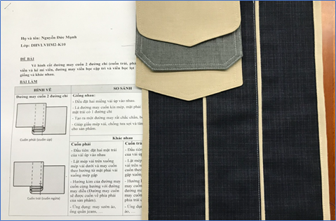 Hoàn thành đầy đủ các bài luyện tập và bài tự học: phân tích lỗi sai hỏng trong quá trình thực hành, vẽ hình cắt so sánh các dạng đường may, thực hiện bài tập nhóm sưu tầm và phân tích video sản xuất công nghiệp tại nhà máy so sánh với bài học cơ bản về thiết bị, cữ, gá, dưỡng, thao tác, năng suất và chất lượng.