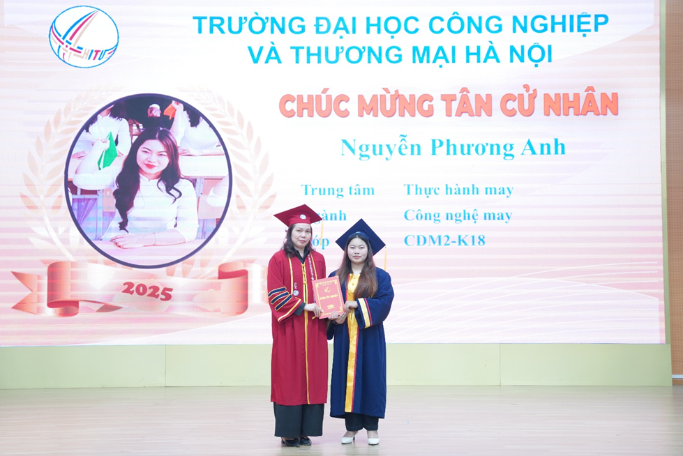Chiều ngày 30/11/2025 tại hội trường của Trường Đại học Công nghiệp và Thương mại Hà Nội, lễ trao bằng Tốt nghiệp cho sinh viên lớp CĐM-K18 đã diễn ra trong không khí trang trọng, ấm áp và đầy tự hào. Các bạn sinh viên xuất hiện rạng rỡ trong trang phục tốt nghiệp, hồi hộp chờ đón khoảnh khắc nhận tấm bằng đánh dấu sự trưởng thành sau 3 năm nỗ lực học tập và rèn luyện.