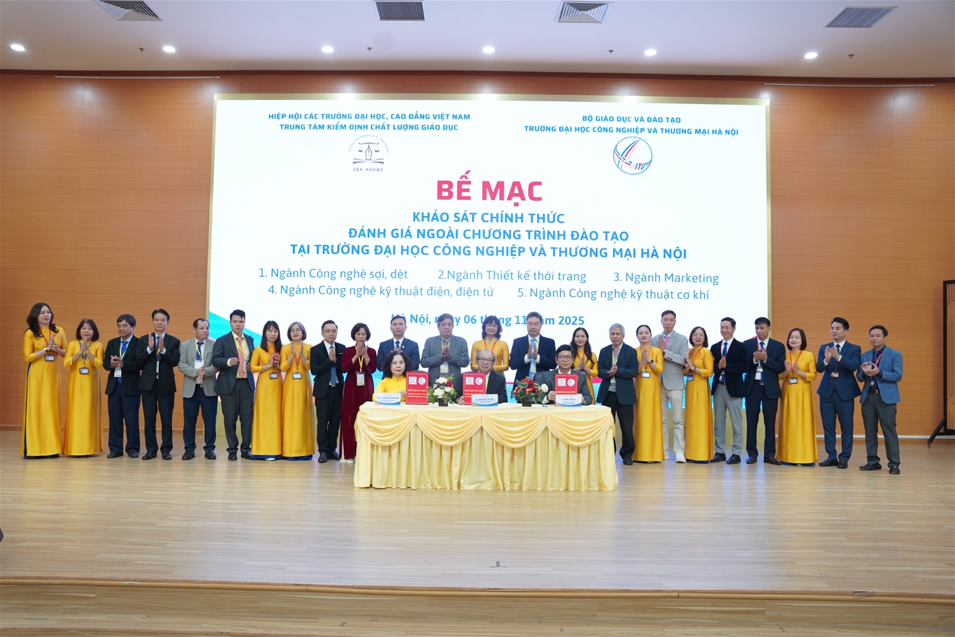 Năm 2025, năm bản lề trong hành trình phát triển đã khép lại với nhiều dấu ấn đặc biệt, đánh dấu bước chuyển mình mạnh mẽ cả về tư duy, mô hình phát triển và chất lượng đào tạo, tạo nền tảng vững chắc để Nhà trường bước vào giai đoạn phát triển mới với khát vọng lớn hơn, tầm nhìn xa hơn và trách nhiệm xã hội cao hơn. Trong năm 2025, sự kiện đổi tên thành Trường Đại học Công nghiệp và Thương mại Hà Nội thể hiện rõ định hướng mở rộng đào tạo đa ngành với lượng tuyển sinh gần 2000 sinh viên trải đều trong lĩnh vực công nghiệp, thương mại, dịch vụ, phù hợp với xu thế phát triển nguồn nhân lực thời kỳ vươn mình của dân tộc. Cũng trong năm 2025, nhà trường đã củng cố vững chắc  năng lực tự chủ và quản trị; Nhà trường trở thành một trong số ít cơ sở giáo dục đại học tự chủ hoàn toàn chi thường xuyên và chi đầu tư (nằm trong tốp 0,6% cơ sở sự nghiệp cả nước thực hiện được mục tiêu tự chủ này), có tích lũy để tái đầu tư phát triển; từng bước hiện đại hóa cơ sở vật chất, môi trường học tập với hầu hết các phòng học lý thuyết, thực hành tin học được trang bị máy điều hoà nhiệt độ, trên 100 phòng ở ký túc xá được trang bị bình nóng lạnh…Năm 2025 là năm nhà trường thúc đẩy liên kết đào tạo - nghiên cứu - chuyển giao công nghệ, khẳng định mạnh mẽ các cam kết chất lượng đào tạo và nghiên cứu với xã hội bao gồm việc có thêm 5 chương trình đạo tạo đạt chuẩn kiểm định quốc gia, số lượng bài báo khoa học/giảng viên cao gấp hơn 2 lần so với chuẩn cơ sở giáo dục đại học, tiếp tục triển khai 01 đề tài cấp nhà nước, hoàn thành 1 đề tài cấp bộ và nhiều đề tài cấp trường; thu hút gần 10 tỷ đồng tài trợ từ doanh nghiệp cho 22 khóa đào tạo theo đơn đặt hàng cho 12 doanh nghiệp lớn với tổng số 660 cán bộ quản lý, kỹ thuật tham gia.