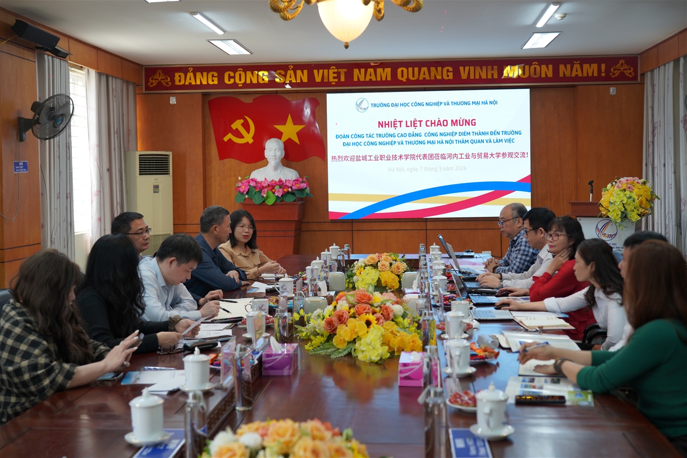 Ngày 07/3/2026, Trường Đại học Công nghiệp và Thương mại Hà Nội đã tổ chức đón tiếp và làm việc với đoàn công tác của Trường Cao đẳng Công nghiệp Diêm Thành, Trung Quốc nhằm trao đổi và thúc đẩy các cơ hội hợp tác trong đào tạo và phát triển nguồn nhân lực.