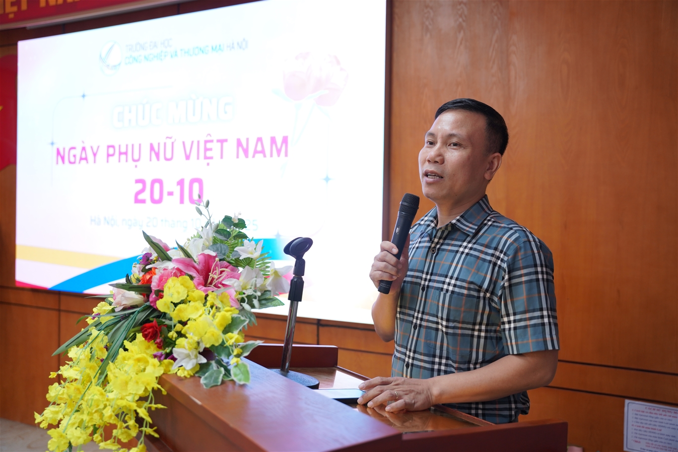 Phát biểu tại buổi gặp mặt, TS. Nguyễn Văn Đức, phó Bí thư Đảng ủy, Chủ tịch Hội đồng trường gửi lời chúc mừng nồng nhiệt và bày tỏ lòng biết ơn sâu sắc đến toàn thể nữ cán bộ, giảng viên, nhân viên HITU – những người luôn tận tâm, sáng tạo và giữ vai trò quan trọng trong mọi hoạt động của Trường.