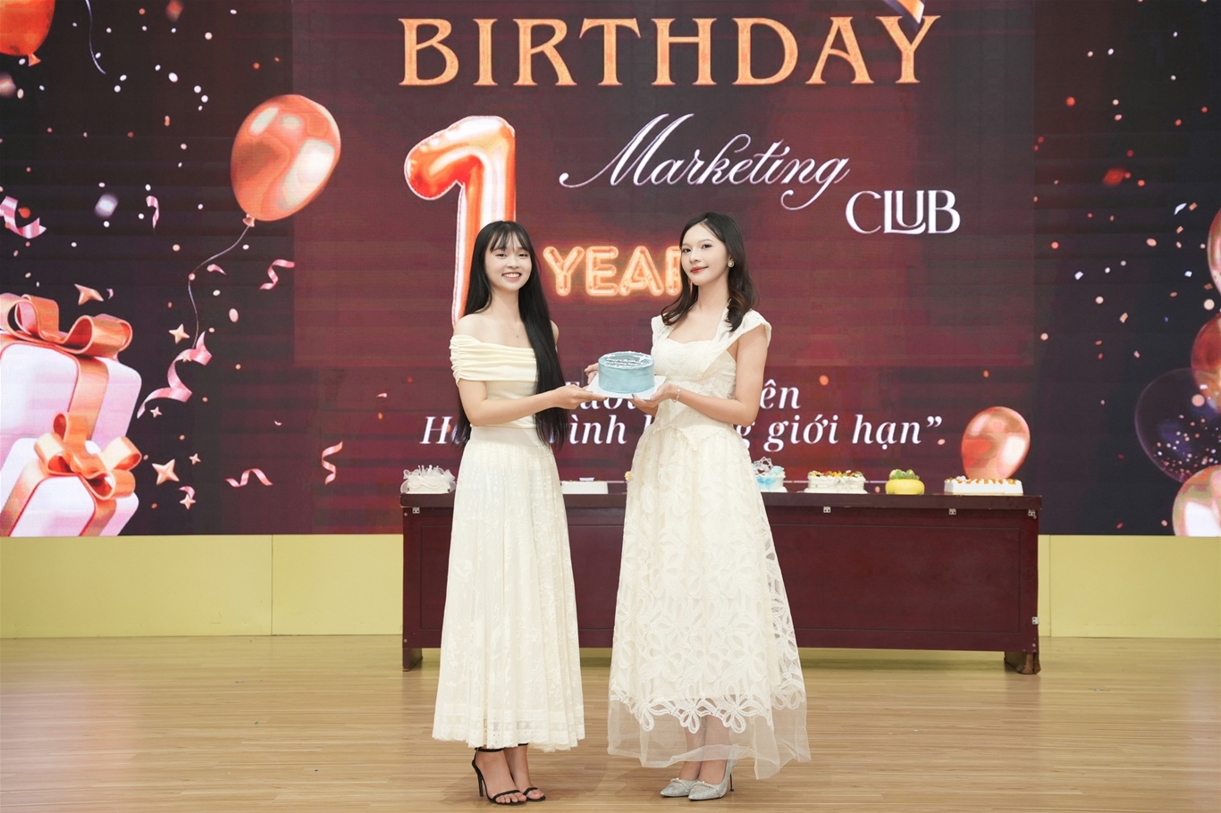 Phương Thảo đại diện đội Thanh niên vận động hiến máu của Trường đến chúc mừng sinh nhật câu lạc bộ Marketing