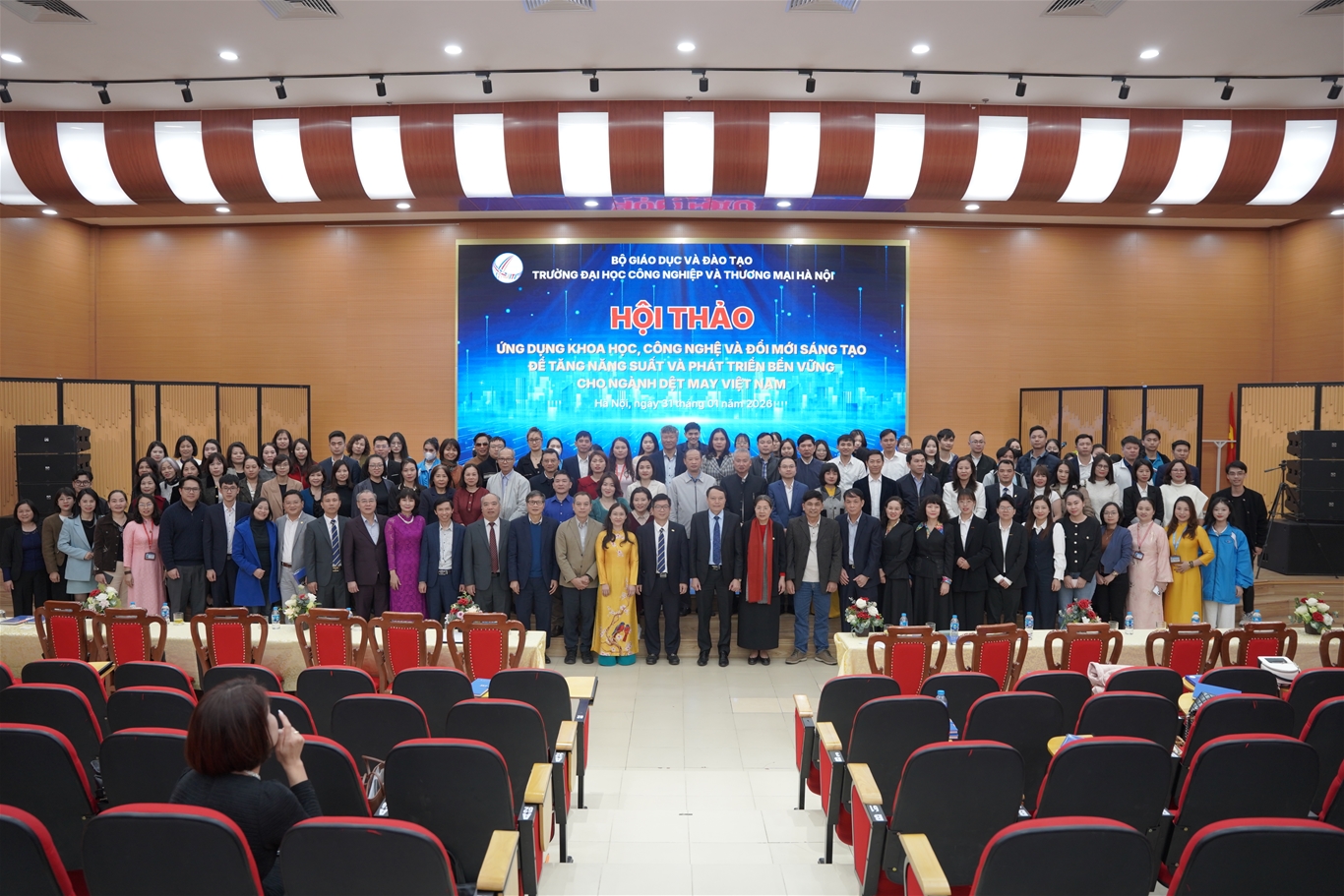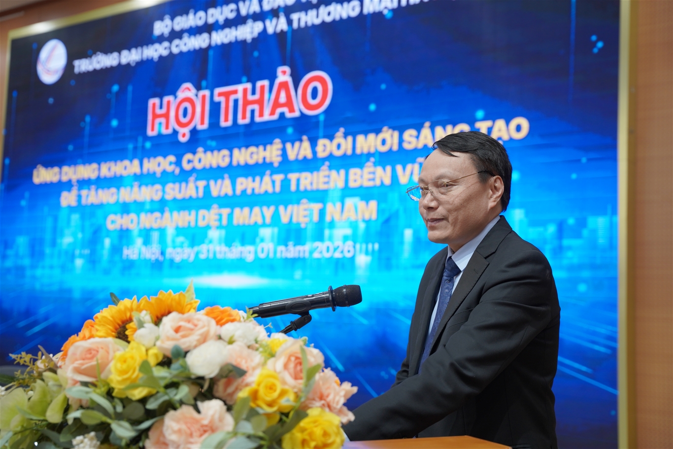 Sáng ngày 31/01/2026, Trường Đại học Công nghiệp và Thương mại Hà Nội (HITU) đã tổ chức Hội thảo khoa học công bố kết quả nghiên cứu và chia sẻ các giải pháp ứng dụng khoa học công nghệ (KHCN) và đổi mới sáng tạo (ĐMST) nhằm nâng cao năng suất ngành dệt may. Hội thảo được tổ chức trong khuôn khổ thực hiện đề tài khoa học cấp quốc gia của Nhà trường, giới thiệu các giải pháp KHCN và ĐMST đã được nghiên cứu, triển khai và ứng dụng hiệu quả tại 10 doanh nghiệp dệt may Việt Nam. Chương trình được tổ chức theo hình thức trực tiếp tại HITU, kết hợp trực tuyến tới các điểm cầu khu vực miền Trung và miền Nam.