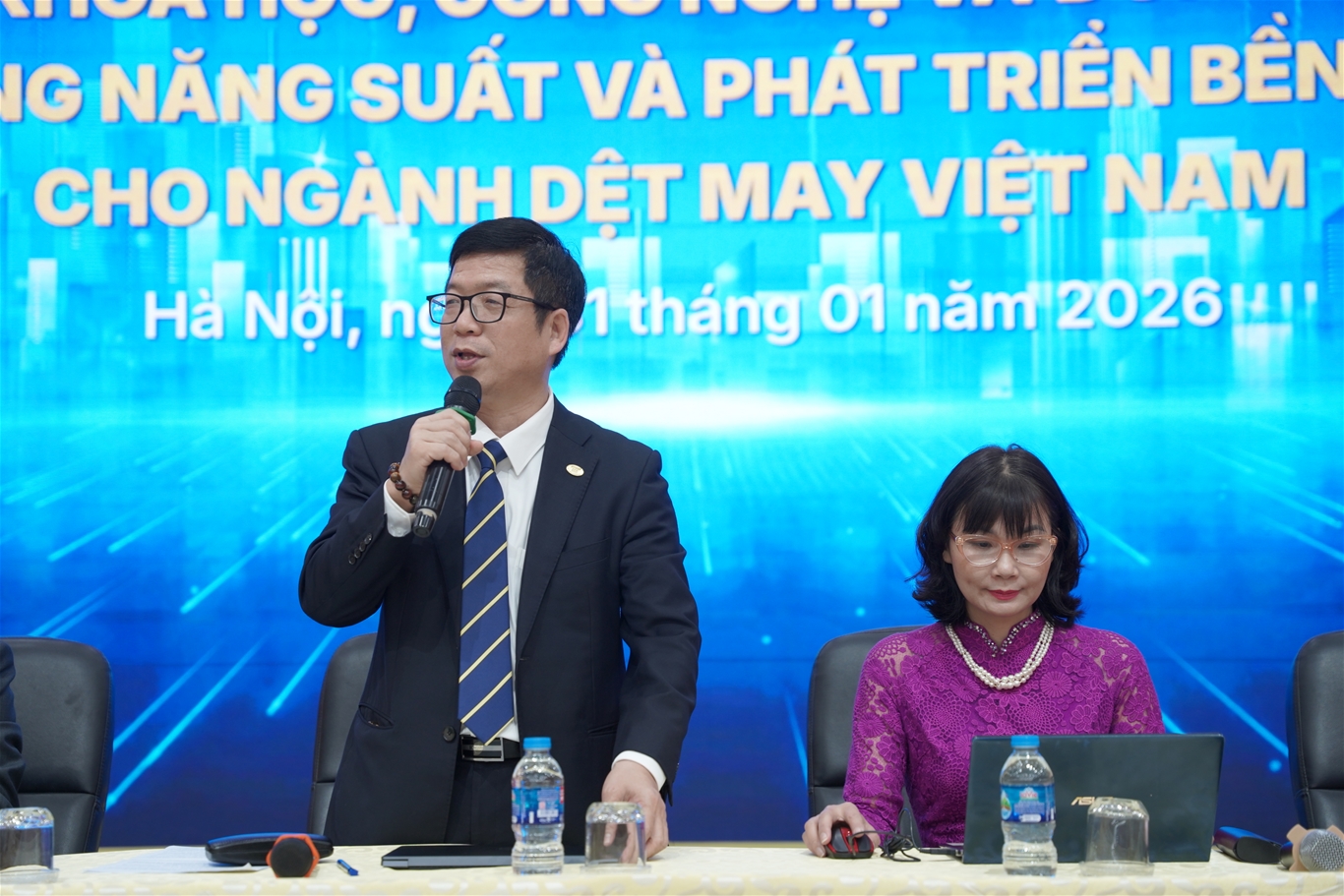 Phát biểu khai mạc Hội thảo, TS. Hoàng Xuân Hiệp – Hiệu trưởng Trường Đại học Công nghiệp và Thương mại Hà Nội, Chủ nhiệm đề tài cho biết, ngành dệt may Việt Nam hiện đang đứng trước nhiều cơ hội đan xen thách thức, đòi hỏi phải giải quyết những bài toán phát triển ngày càng phức tạp. Việt Nam hiện nằm trong nhóm các quốc gia có năng lực cạnh tranh hàng đầu thế giới về dệt may; riêng năm 2025, kim ngạch xuất khẩu của ngành đạt khoảng 46 tỷ USD, năng suất lao động tính theo giá trị xuất khẩu tăng khoảng 2,4 lần so với 15 năm trước – một thành tựu rất đáng ghi nhận.